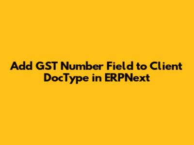 Adding a Goods and Services Tax (GST) number field to the Client DocType in ERPNext can significantly improve your business process, especially if you operate in a region where GST compliance is mandatory. This article guides you through the steps to implement this feature, ensuring your ERPNext system accurately captures and manages client GST information.