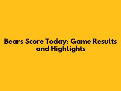 Bears Score Today: Game Results And Highlights