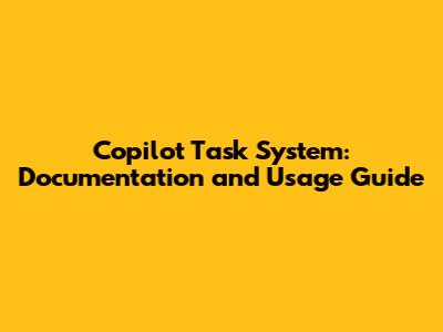 Copilot Task System: Documentation And Usage Guide