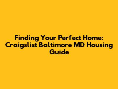 Finding Your Perfect Home: Craigslist Baltimore MD Housing Guide