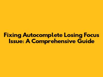 Fixing Autocomplete Losing Focus Issue: A Comprehensive Guide