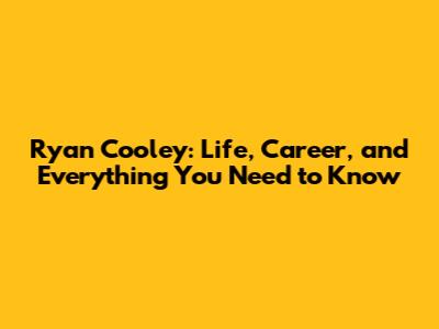 Ryan Cooley: Life, Career, And Everything You Need To Know