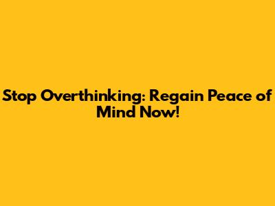 Stop Overthinking: Regain Peace Of Mind Now!