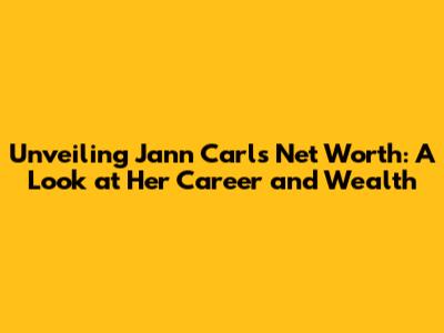 Unveiling Jann Carl's Net Worth: A Look At Her Career And Wealth