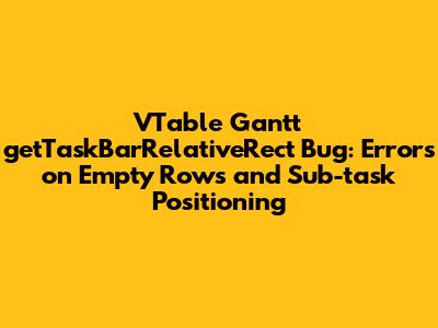 This article addresses a critical bug identified in the getTaskBarRelativeRect API within the VTable Gantt chart library. This bug manifests in two primary scenarios: errors when the API is called on empty task rows and incorrect positioning information for sub-tasks displayed in compact mode. Understanding and resolving these issues is crucial for developers relying on VTable Gantt for accurate task visualization and interactive features. The problems stem from the method failing to handle scenarios where task bars aren't rendered due to empty data or compact mode displays. Let's delve into the specifics of the bug, its impact, and the proposed solutions to ensure robust and accurate task positioning within VTable Gantt charts. This article will help you understand the intricacies of this issue and how to address it effectively, ensuring your applications remain stable and provide the accurate task positioning information users expect.