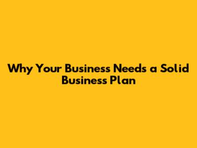 Why Your Business Needs A Solid Business Plan